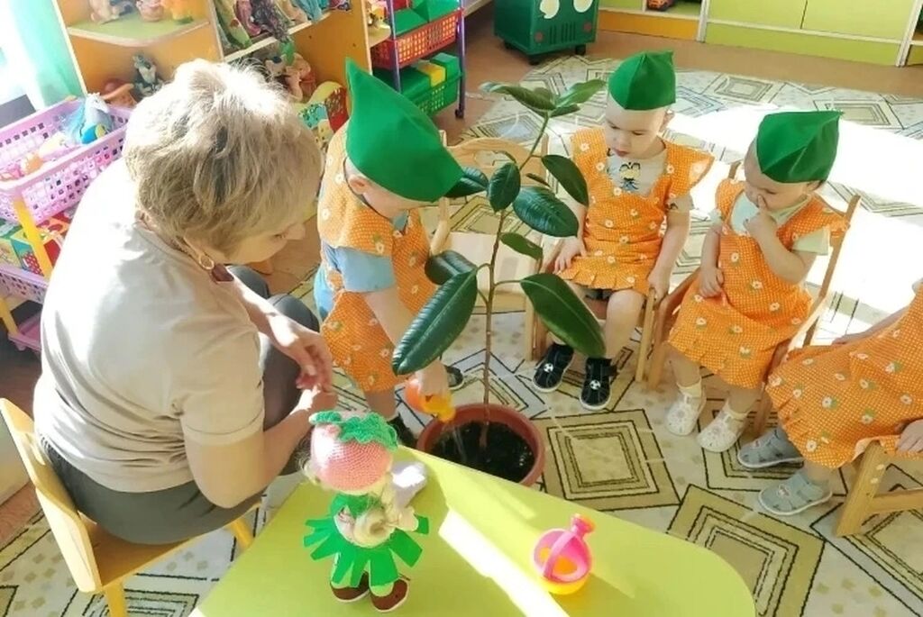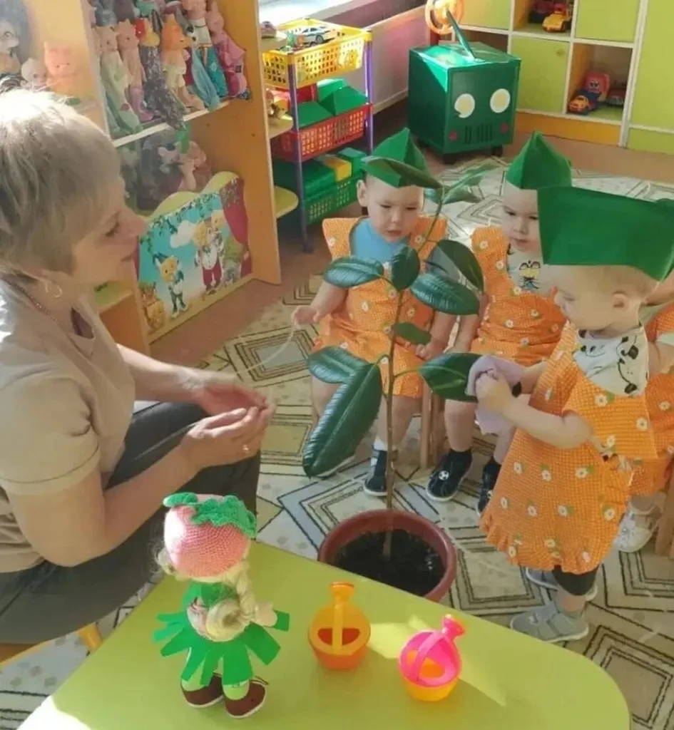 В День экологических знаний малыши группы «Медузка» приступили к своим маленьким, но столь важным экологическим миссиям. Первым делом, под чутким руководством воспитателя, ребята с большим интересом рассматривали каждого зеленого обитателя подоконника. Евгения Николаевна провела беседу о том, как растения дышат, как пьют воду и как им необходим солнечный свет для роста и процветания. Особое внимание привлек фикус – этот зеленый гигант, чьи пышные листья казались воплощением самого леса. Загадки про фикус пробудили в малышах азарт и смекалку. Кульминацией дня стала практическая часть – уход за цветком. Вооружившись маленькими лейками и распылителями, юные экологи с заботой поливали землю, аккуратно протирали пыль с листьев влажными салфетками и даже осторожно рыхлили почву. Этот день, посвященный заботе о природе, помог малышам понять, насколько важна и прекрасна окружающая нас растительность.